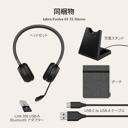 Jabra Evolve 65 TE ヘッドセット ワイヤレス 両耳 マイク付き スタンド付き Link 390a UC ステレオ 2台同時接続 Bluetooth5.2 ノイズキャンセリング 最長16時間通話 1日中快適なレザークッション Teams/Zoom利用可能 会議